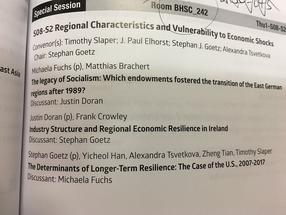 The ERSA congress brought over 700 international experts in the area of urban and regional science to Cork last week August 28th to 31st. The #ERSACORK2018 congress proved to be an extremely busy event for me where I participated in the opening session on Irish urban challenges, a young scholars round table on the future of regional science, a quality of life panel discussion with Cork Chamber and Cork City Council and four co-authored research paper presentations on areas such as regional resilience, entrepreneurial start-ups, and absorptive capacity and individual well-being in Ireland and Europe. Below are some pictures from the week's activities.